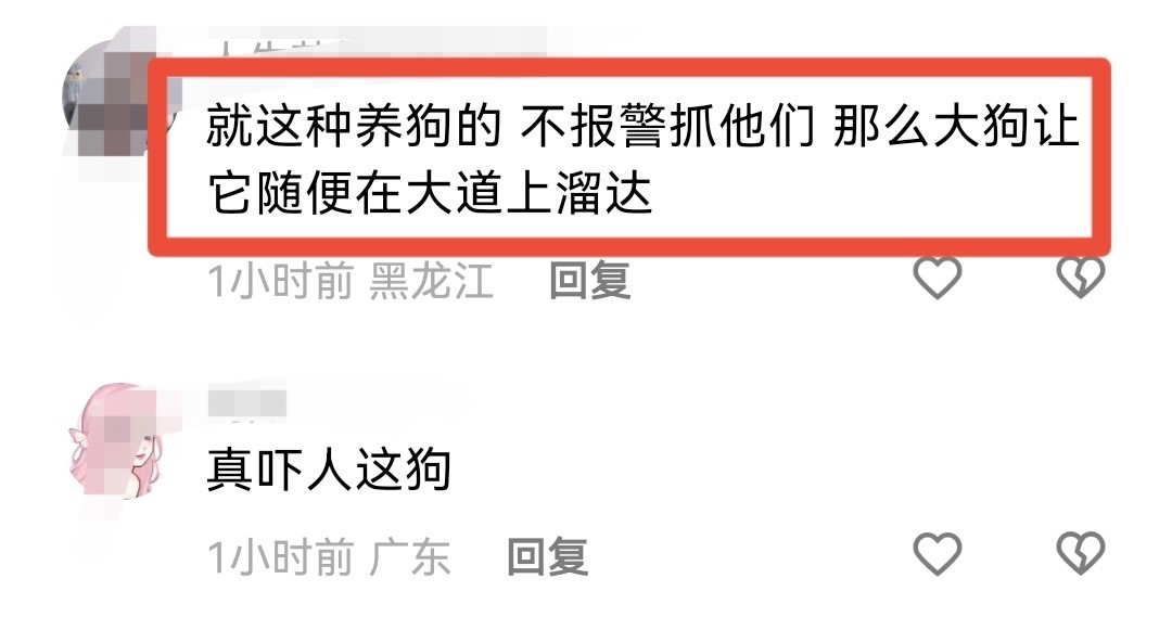 还有网友说,这么大的狗在大街上遛还不拴绳还咬人,应该直接报警处理。