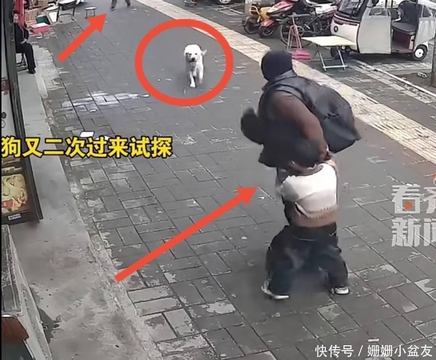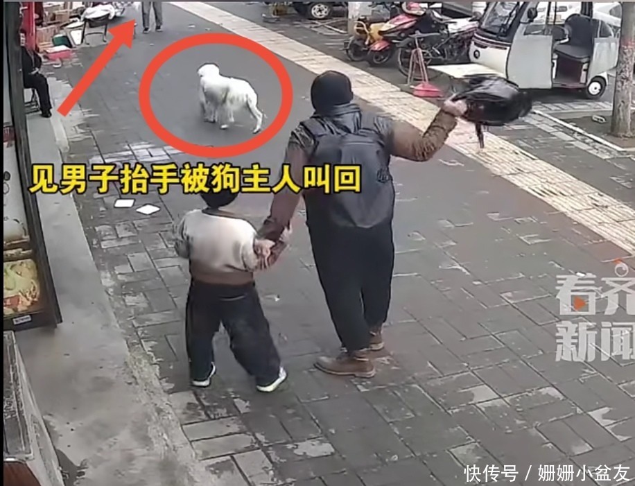但是,让父子俩没有想到的是,恶狗跑到狗主人身边后,一眨眼的工夫掉头跑了回来,直接又朝着父子俩这边扑了过来。
